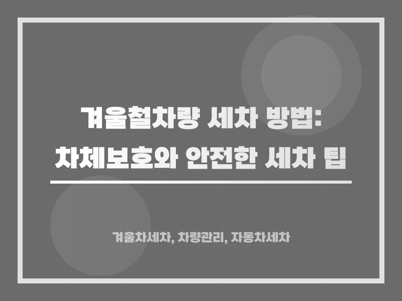๊ฒจ์ธ์ฒ ์ฐจ๋ ์ธ์ฐจ๋ ์ฌ๋ฆ๊ณผ๋ ๋ค๋ฅธ ์ฃผ์๊ฐ ํ์ํฉ๋๋ค. ๊ฒจ์ธ์๋ ๋๊ณผ ์ผ์, ์ ์ค์ ๋ฑ์ด ์ฐจ๋์ ์ธ๋ถ์ ์์ฌ ๋์ฅ๋ฉด์ ์์์ ์ค ์ ์์ต๋๋ค. ์ด ๋๋ฌธ์ ๊ฒจ์ธ์ฒ ์ธ์ฐจ๋ ๋์ฑ ์ค์ํ ์์ ์ด ๋ฉ๋๋ค. ์ธ์ฐจ๋ฅผ ์ ๋๋ก ํ์ง ์์ผ๋ฉด ์ฐจ๋์ ๋์ฅ์ ์ผ์์ด ์ผ์ด๋ถ๊ฑฐ๋, ์ ์ค์ ์์ฌ๋ฌผ์ด ๋ถ์์ ์์ธ์ด ๋ ์ ์์ต๋๋ค. ์ด๋ฌํ ๋ฌธ์ ๋ฅผ ์๋ฐฉํ๊ธฐ ์ํด์๋ ๊ฒจ์ธ์ฒ ์ ์ ์ ํ ์ธ์ฐจ ๋ฐฉ๋ฒ์ ์ ํํ๋ ๊ฒ์ด ํ์ํฉ๋๋ค.