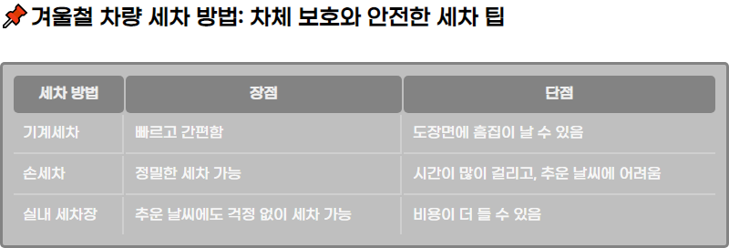 ๊ฒจ์ธ์ฒ ์๋ ๊ธฐ์จ๊ณผ ๋ ์จ์ ๋ฐ๋ผ ์ธ์ฐจ ๋ฐฉ๋ฒ์ ์ ํํ๋ ๊ฒ์ด ์ค์ํฉ๋๋ค. ์ธ์ฐจ ๋ฐฉ๋ฒ์ผ๋ก๋ ๊ธฐ๊ณ์ธ์ฐจ, ์์ธ์ฐจ, ์ค๋ด ์ธ์ฐจ์ฅ ๋ฑ์ ์ ํํ ์ ์์ต๋๋ค. ๊ฐ ๋ฐฉ๋ฒ์ ์ฅ๋จ์ ์ ์ ์๊ณ , ์ํฉ์ ๋ง๊ฒ ์ ํํ๋ ๊ฒ์ด ์ฐจ๋์ ์์ ํ๊ฒ ๋ณดํธํ๋ ๋ฐฉ๋ฒ์ ๋๋ค.