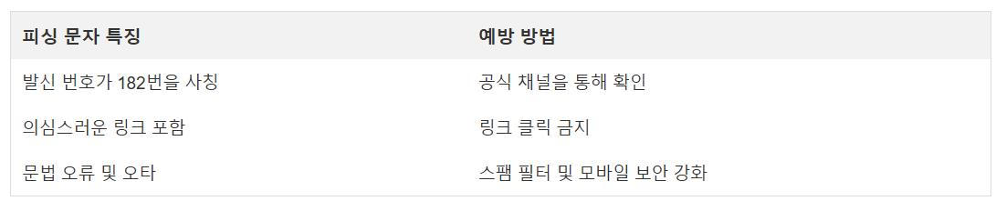 ๊ตํต๋ฒ๊ท ์๋ฐ ๋ฒ์น๊ธ ํผ์ฑ ๋ฌธ์ ํผํด๋ฅผ ์๋ฐฉํ๋ ค๋ฉด, ์์ฌ์ค๋ฌ์ด ๋ฌธ์๋ฅผ ๋ฐ์์ ๋ ๋งํฌ ํด๋ฆญ์ ์์ ํ๊ณ , ๊ณต์ ์ฑ๋์ ํตํด ์ ๋ณด๋ฅผ ํ์ธํ๋ ๊ฒ์ด ๊ฐ์ฅ ์ค์ํฉ๋๋ค. ๋ํ, ์คํธ ๋ฌธ์ ์ฐจ๋จ ๋ฐ ๋ชจ๋ฐ์ผ ๋ณด์ ๊ธฐ๋ฅ ๊ฐํ์ ๊ฐ์ ์๋ฐฉ ์กฐ์น๋ฅผ ํตํด ํผํด๋ฅผ ์๋ฐฉํ ์ ์์ต๋๋ค.
