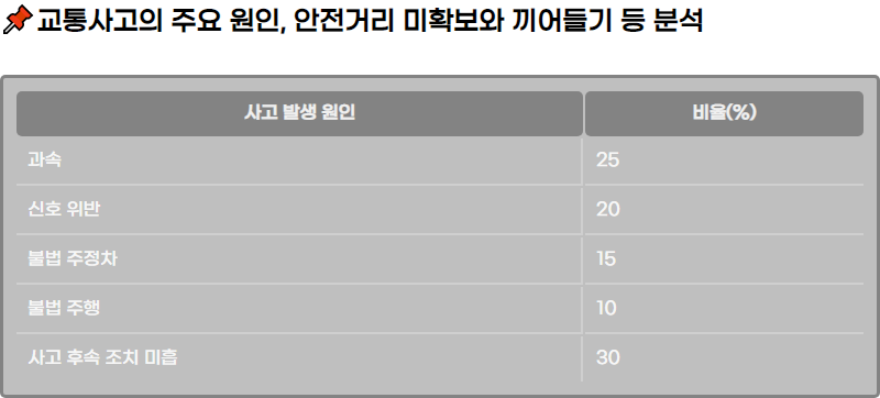 ๊ตํต์ฌ๊ณ ์ ์ฃผ๋ ์์ธ์ ๋ํด ์ดํด๋ณด์ธ์. ์์ ๊ฑฐ๋ฆฌ๋ฅผ ์ ์งํ์ง ์๊ฑฐ๋, ์ฐจ์ ๋ณ๊ฒฝ ์ ์ ์ ํ ๋์ฒ๊ฐ ์ด๋ฃจ์ด์ง์ง ์์ผ๋ฉด ์ฌ๊ณ ๊ฐ ๋ฐ์ํ ์ ์์ต๋๋ค. ์ค์ ์ฌ๋ก๋ฅผ ํตํด ๊ตํต์ฌ๊ณ ๋ฅผ ์๋ฐฉํ๋ ๋ฐฉ๋ฒ๊ณผ ํจ๊ป ๊ตํต ๋ฒ๊ท ์ค์์ ์ค์์ฑ์ ์์๋ณด์ธ์.