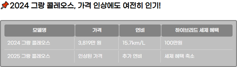 ๊ทธ๋ ์ฝ๋ ์ค์ค๋ ์ ํต์ ์ผ๋ก ๋ฅด๋ ธ์ฝ๋ฆฌ์์์ ๊ฐ์ฅ ๋ง์ด ํ๋ฆฌ๋ SUV ๋ชจ๋ธ ์ค ํ๋์ ๋๋ค. ๊ทธ๋ฌ๋ 2025๋ ํ ๋ชจ๋ธ๋ถํฐ ์ ํธ๋ฆผ์ ๊ฑธ์ณ ๊ฐ๊ฒฉ์ด ์ธ์๋์์ต๋๋ค. ์ด๋ ์ฌ๋ฌ ๊ฐ์ง ์ด์ ๋ก ํ์ด๋ ์ ์์ต๋๋ค. ์ฒซ์งธ, ์ด ๋ชจ๋ธ์ ๋ฐ์ด๋ ์ฑ๋ฅ๊ณผ ๋์์ธ์ด ํ๋งค๋ฅผ ๊ฒฌ์ธํ๊ธฐ ๋๋ฌธ์ ๋๋ค. 2024๋ ํ ๊ทธ๋ ์ฝ๋ ์ค์ค๋ ๊ณ ๊ธ์ค๋ฌ์ด ์ธ๊ด๊ณผ ํจ๊ป ์ฒจ๋จ ๊ธฐ์ ์ ํ์ฌํ๋ฉฐ ๊ฒฝ์๋ ฅ ์๋ ๊ฐ๊ฒฉ์ ์ ์ํ๊ณ ์์์ผ๋, ํ๋งค๋ ๊ธ์ฆ์ ๋ฐ๋ผ ์ ์กฐ์ฌ๋ค์ด ๊ฐ๊ฒฉ์ ์ธ์ํ ์๋ฐ์ ์์์ต๋๋ค. ๋์งธ, ํ์ด๋ธ๋ฆฌ๋ ๋ชจ๋ธ์ ์ธ์ ํํ์ด ์ถ์๋์์์๋ ๋ถ๊ตฌํ๊ณ , ์๋น์๋ค์ ์ฌ์ ํ ์ด ๋ชจ๋ธ์ ์ฑ๋ฅ๊ณผ ํจ์จ์ฑ์ ๋งค๋ ฅ์ ๋๋ผ๋ฉฐ ๊ตฌ๋งค๋ฅผ ์ด์ด๊ฐ์ต๋๋ค.