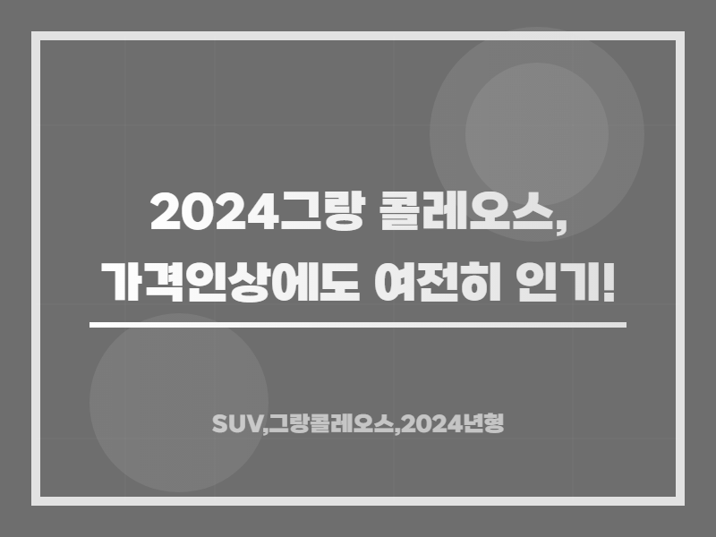 2024 ๊ทธ๋ ์ฝ๋ ์ค์ค, ๊ฐ๊ฒฉ ์ธ์์๋ ํ๋งค ์ค์ ๊ธ์ฆ! ๊ตญ๋ด SUV ์์ฅ์์ ๋์ ํ๋งค๋์ ๊ธฐ๋กํ ์ด์ ๋ฅผ ํ์ธํด๋ณด์ธ์.