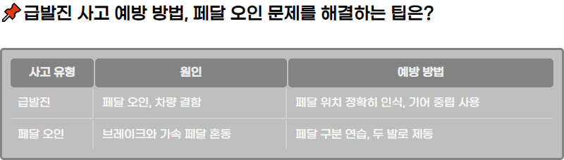 λν, κΈλ°μ§ μ¬κ³ λ λ°μ μ΄κΈ°μλ μ°¨λμ΄ μ½κ² λ©μΆμ§ μμΌλ©°, λΈλ μ΄ν¬λ₯Ό μ λλ‘ μλμν€μ§ μμΌλ©΄ λ ν° μ¬κ³ λ₯Ό μ΄λν μ μμ΅λλ€. μ΄μ μκ° νλ¬μ μλͺ» λ°μμ λ, μ¦ κ°μ νλ¬μ λ°κ³ μλ€κ³ μκ°νλ©΄μ λΈλ μ΄ν¬λ₯Ό λ°μ§ μκ±°λ, λ°λλ‘ λΈλ μ΄ν¬ νλ¬μ λ°μΌλ©΄μ κ°μ νλ¬μ λ°μ κ²½μ° κΈλ°μ§μ΄ μΌμ΄λ μ μμ΅λλ€. μ΄λ¬ν μ¬κ³ λ₯Ό μλ°©νκΈ° μν λ°©λ²μ μμ§νλ κ²μ΄ μ€μν©λλ€.