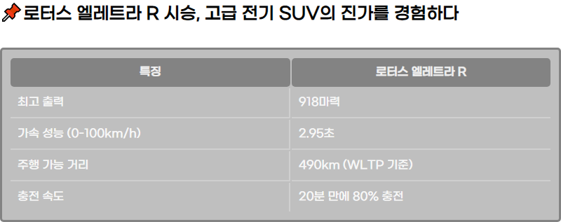 ๋กํฐ์ค ์๋ ํธ๋ผ R, ์ต๊ณ ์ ์ ๊ธฐ SUV