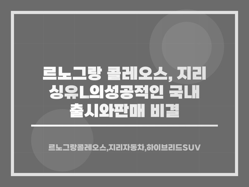 2022๋ , ์ง๋ฆฌ ์๋์ฐจ๋ ๋ฅด๋ ธ์ฝ๋ฆฌ์์ 2๋ ์ฃผ์ฃผ๋ก ์ฌ๋ผ์ฐ์ต๋๋ค. ์ด๋ ์ง๋ฆฌ ์๋์ฐจ๊ฐ ๊ตญ๋ด ์์ฅ์์ ํฐ ์ฑ๊ณผ๋ฅผ ์ด๋ฃจ๊ธฐ ์ํ ์ค์ํ ์ ๋ต์ ๊ฒฐ์ ์ด์์ต๋๋ค. ๊ทธ๋์ ๋ฅด๋ ธ๋ ๊ตญ๋ด ์์ฅ์์ ๋ฎ์ ํ๋งค ์ฑ๊ณผ๋ฅผ ๋ณด์๊ณ , ์ง๋ฆฌ ์๋์ฐจ๋ ์ด๋ฅผ ๊ฐ์ ํ๊ธฐ ์ํด ๋ฅด๋ ธ ์ฝ๋ฆฌ์์ ์ง๋ถ์ ์ธ์ํ๊ณ , ์๋ก์ด ์ฐจ๋ฅผ ๋์ ํ๊ธฐ๋ก ๊ฒฐ์ฌํ์ต๋๋ค. ๊ทธ ๊ฒฐ๊ณผ, ์ง๋ฆฌ ์๋์ฐจ๋ ๋ฅด๋ ธ ๊ทธ๋ ์ฝ๋ ์ค์ค๋ฅผ ์ถ์ํ๋ฉด์ ๊ตญ๋ด ํ์ด๋ธ๋ฆฌ๋ SUV ์์ฅ์์ ํฐ ๋ํ์ ์ผ์ผ์ผฐ์ต๋๋ค.