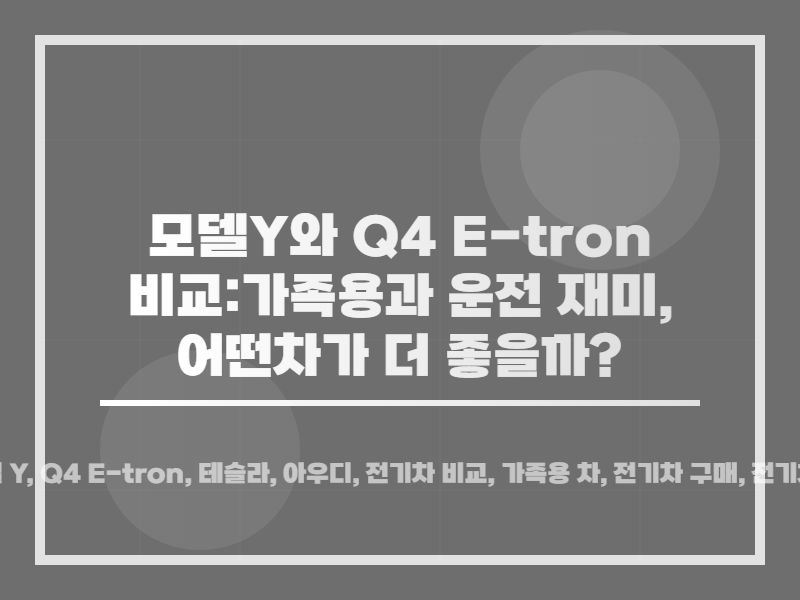 ์ ๊ธฐ์ฐจ์ ์ ํ์ ๋จ์ํ ๋น์ฉ์ ๋์ด์, ์ฐจ๋์ ๊ธฐ๋ฅ, ์ฃผํ ์ฑ๋ฅ, ๊ณต๊ฐ ํ์ฉ๋ ๋ฑ ๋ค์ํ ์์๋ฅผ ๊ณ ๋ คํด์ผ ํฉ๋๋ค. ์ต๊ทผ ๋ง์ ์๋น์๋ค์ด ํ ์ฌ๋ผ ๋ชจ๋ธ Y์ ์์ฐ๋ Q4 E-tron์ ๋น๊ตํ๊ณ ์๋๋ฐ, ๋ ์ฐจ๋ ๋ชจ๋ ๊ณ ์ ํ ์ฅ์ ์ด ์์ง๋ง, ์ด๋ค ์ฐจ๊ฐ ๋ ์ ํฉํ ๊น์? ํนํ, 3์ธ ๊ฐ์กฑ์ด ํจ๊ป ์ฌ์ฉํ ์ฐจ๋์ด๋ผ๋ฉด ์ด๋ค ์ ๊ธฐ์ฐจ๊ฐ ๋ ๋์์ง์ ๋ํด ๊ณ ๋ฏผํ๋ ๋ถ๋ค์ด ๋ง์ต๋๋ค. ์ด ๊ธ์์๋ ๋ชจ๋ธ Y์ Q4 E-tron์ ํน์ง์ ๋น๊ตํ๊ณ , ๊ฐ์กฑ์ฉ ์ฐจ๋ก์์ ์ฅ๋จ์ ๊ณผ ์ด์ ์ฌ๋ฏธ๋ฅผ ๊ณ ๋ คํ์ฌ ์ต์ ์ ์ ํ์ ๋๊ณ ์ ํฉ๋๋ค.