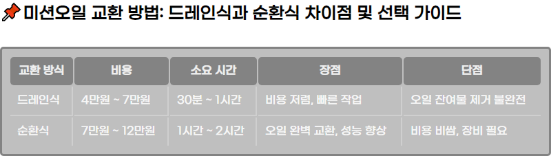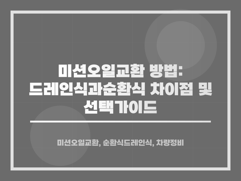 ๋ฏธ์…˜์˜ค์ผ ๊ตํ™˜ ๋ฐฉ๋ฒ•: ๋“œ๋ ˆ์ธ์‹๊ณผ ์ˆœํ™˜์‹ ์ฐจ์ด์  ๋ฐ ์„ ํƒ ๊ฐ€์ด๋“œ