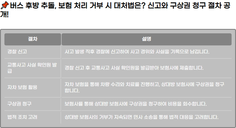 ๋ฒ„์Šค ํ›„๋ฐฉ ์ถ”๋Œ, ๋ณดํ—˜ ์ฒ˜๋ฆฌ ๊ฑฐ๋ถ€ ์‹œ ๋Œ€์ฒ˜๋ฒ•์€? ์‹ ๊ณ ์™€ ๊ตฌ์ƒ๊ถŒ ์ฒญ๊ตฌ ์ ˆ์ฐจ ๊ณต๊ฐœ!