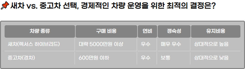 ์ค๊ณ ์ฐจ๋ฅผ ์ ํํ๋ ๊ฒฝ์ฐ, ์ด๊ธฐ ๊ตฌ๋งค ๋น์ฉ์ด ์๋์ ์ผ๋ก ๋ฎ๊ธฐ ๋๋ฌธ์ ์์ฐ์ ์ ์ฝํ ์ ์์ต๋๋ค. ํนํ, 600๋ง ์ ์ดํ์ ์์ฐ์ผ๋ก๋ ์ค๊ณ ๊ฒฝ์ฐจ๋ฅผ ๊ตฌ๋งคํ ์ ์์ต๋๋ค. ๋ค๋ง, ์ค๊ณ ์ฐจ์ ๊ฒฝ์ฐ ์ฃผํ๊ฑฐ๋ฆฌ์ ์ฌ๊ณ ์ด๋ ฅ ๋ฑ์ ๊ณ ๋ คํด์ผ ํ๋ฏ๋ก, ์ฐจ ์ํ๋ฅผ ๋ฉด๋ฐํ ์ ๊ฒํ๋ ๊ฒ์ด ์ค์ํฉ๋๋ค. ๊ฒฝ์ฐจ๋ ๋์ฒด๋ก ์ฐ๋น๊ฐ ์ข๊ณ , ๋ณดํ๋ฃ๋ ์ ๋ ดํ์ฌ ์ ์ง๋น์ฉ์ด ์๋์ ์ผ๋ก ์ ์ ํธ์ ๋๋ค.