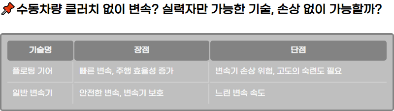 ์๋์ฐจ๋์์ ํด๋ฌ์น ์์ด ๋ณ์ํ๋ ๊ฒ์ ๋ถ๊ฐ๋ฅํ ๊ธฐ์ ์ผ๊น์? ์ฌ์ค, ๋ง์ ์ด๋ค์ด ํด๋ฌ์น ์์ด ์๋์ฐจ๋์ ๊ธฐ์ด๋ฅผ ๋ณ์ํ๋ ๋ฐฉ๋ฒ์ ๊ถ๊ธํดํฉ๋๋ค. 'ํ๋กํ ๊ธฐ์ด'๋ผ๋ ํน๋ณํ ๊ธฐ์ ์ ์ฌ์ฉํ๋ฉด, ์ด๋ก ์์ผ๋ก๋ ํด๋ฌ์น ์์ด๋ ๋ณ์์ด ๊ฐ๋ฅํฉ๋๋ค. ๊ทธ๋ฌ๋ ์ด ๊ธฐ์ ์ ๊ณ ๋์ ์๋ จ๋๋ฅผ ์๊ตฌํ๊ณ , ์๋ชปํ๋ฉด ๋ณ์๊ธฐ ๋ด๋ถ ๋ถํ์ ์ฌ๊ฐํ ์์์ ์ด๋ํ ์ ์์ต๋๋ค.