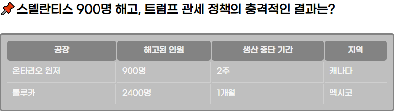 2025๋ 3์, ๋ฏธ๊ตญ์ ์ฃผ์ ์๋์ฐจ ์ ์กฐ์ ์ฒด์ธ ์คํ ๋ํฐ์ค๋ ๋๋๋ ํธ๋ผํ ๋ํต๋ น์ ๊ณผ๊ฒฉํ ๊ด์ธ ์ ์ฑ ์ผ๋ก ์ธํด 900๋ช ์ ์ผ์๋ฆฌ๋ฅผ ํด๊ณ ํ ๊ฒ์ด๋ผ๊ณ ๋ฐํํ์ต๋๋ค. ํธ๋ผํ์ ์๋์ฐจ ๊ด์ธ๋ ๋ฏธ๊ตญ ๋ด ์ ์กฐ์ ์ฒด๋ค์ด ์๊ตญ ๋ด ์์ฐ์ ๋๋ฆฌ๋๋ก ์ ๋ํ๊ณ ์์ง๋ง, ๊ทธ ์ฌํ๋ ๋ ธ๋ ์์ฅ์ ํฐ ์ํฅ์ ๋ฏธ์น๊ณ ์์ต๋๋ค.