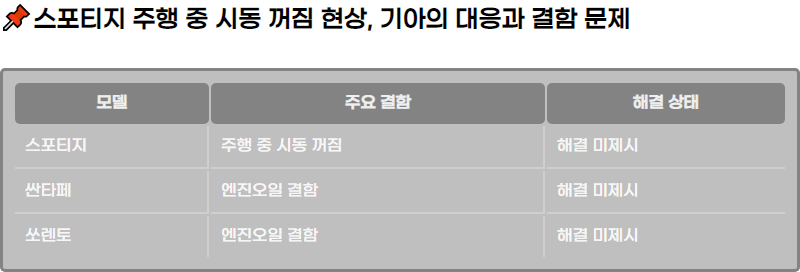 ๊ธฐ์๋ ํ๊ตญ ๋ด ์๋์ฐจ ์์ฅ์์ ํฐ ์ ์ ์จ์ ์ฐจ์งํ๊ณ ์์ผ๋ฉฐ, ํ์ฌ๊น์ง๋ ๋ง์ ์๋น์๋ค์ด ๊ธฐ์์ ์ฐจ๋์ ์ ํธํ๊ณ ์์ต๋๋ค. ๊ทธ๋ฌ๋ ์ต๊ทผ ๋ช ๋ ๋์ ๊ธฐ์์ ๋ชจ๋ธ์์ ๋ฐ์ํ ๊ฒฐํจ ๋ฌธ์ ๋ค์ด ์๋ฐ๋ผ ๋ถ๊ฑฐ์ง๋ฉด์ ์๋น์๋ค์ ์ ๋ขฐ๋๊ฐ ์์ํ ํ๋ฝํ๊ณ ์์ต๋๋ค. ํนํ, ์ค๋ ๊ฒฐํจ์ด ๋ฐ์ํ ํ์๋ ์ด๋ฌํ ๋ฌธ์ ์ ๋ํ ํด๊ฒฐ์ฑ ์ ์ ๋๋ก ์ ์ํ์ง ์๊ณ ์๋ ๊ธฐ์์ ํ๋์ ๋ํด ๋ง์ ๋นํ์ด ์ ๊ธฐ๋๊ณ ์์ต๋๋ค.