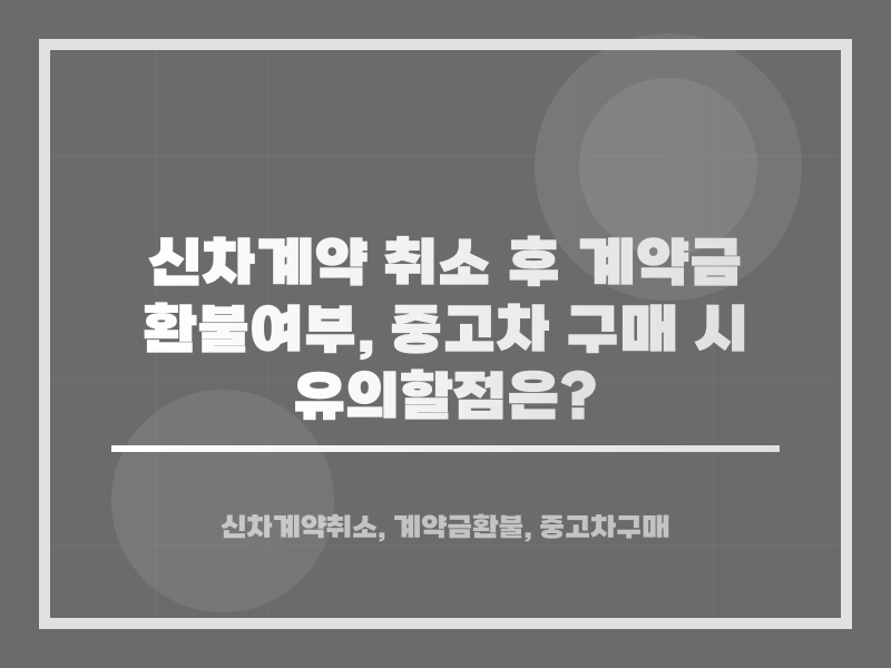 ๋ฐ๋ผ์, ์ค๊ณ ์ฐจ ๊ตฌ๋งค ๊ณ์ฝ์ ์ทจ์ํ ๊ฒฝ์ฐ, ๊ณ์ฝ๊ธ ๋ฐํ์ด ์ด๋ ค์ด ๊ฒฝ์ฐ๊ฐ ๋ง์ต๋๋ค. ์ค๊ณ ์ฐจ ๋๋ฌ๋ ๋งค๋ฌผ ํ๋ณด๋ฅผ ์ํด ์ด๋ฏธ ์ผ๋ถ ์ ์ฐจ๋ฅผ ์งํํ์ ์ ์๊ธฐ ๋๋ฌธ์, ์ทจ์ ์ ๊ณ์ฝ๊ธ์ ๋๋ ค์ฃผ์ง ์๋ ๊ฒฝ์ฐ๊ฐ ๋๋ถ๋ถ์ ๋๋ค. ์ด์ ๋ฐ๋ผ ๊ณ์ฝ์๋ฅผ ํตํด ์ค๊ณ ์ฐจ ๊ณ์ฝ๊ธ ํ๋ถ ๊ท์ ์ ๋ํ ๋ด์ฉ์ ์ถฉ๋ถํ ์์งํด์ผ ํฉ๋๋ค.