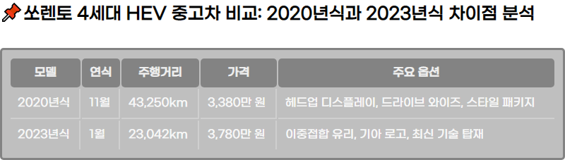 ์๋ ํ 4์ธ๋ HEV ์ค๊ณ ์ฐจ ๊ตฌ๋งค ์, 2020๋ ์๊ณผ 2023๋ ์ ๋น๊ตํ๊ธฐ