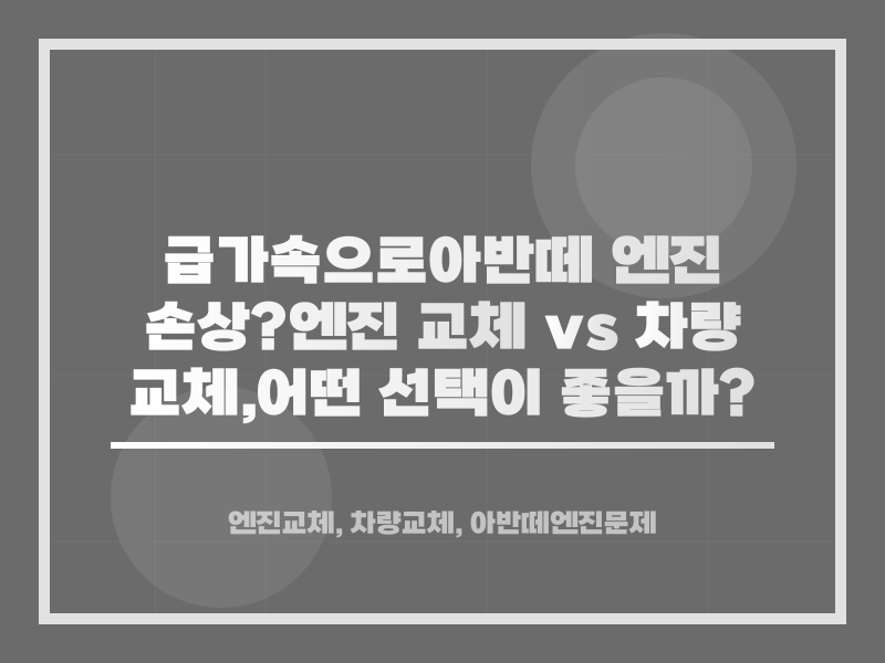 μ€κ³ μμ§μ κ΅μ²΄νλ λΉμ©μ μ½ 300λ§ μ λ΄μΈλ‘ μμλ©λλ€. μ΄λ μ ν μμ§μ λΉν΄ ν¨μ¬ μ λ ΄νμ§λ§, λ΄κ΅¬μ±μ λν 보μ₯μ΄ μμ΅λλ€. λ°λΌμ μμ§ κ΅μ²΄λ₯Ό κ²°μ ν λλ μ€κ³ μμ§μ μνμ ν¨κ», κ΅μ²΄ ν μ°¨λμ μ¬μ© λͺ©μ κ³Ό κΈ°κ°μ κ³ λ €ν΄μΌ ν©λλ€. μ°¨λμ κ³μ μ€λ«λμ μ¬μ©νκ³ μ νλ€λ©΄, μμ§ μΈμλ μ°¨λμ λ€λ₯Έ λΆνμ λν μ κ²κ³Ό κ΅μ²΄κ° νμν μ μμ΅λλ€.