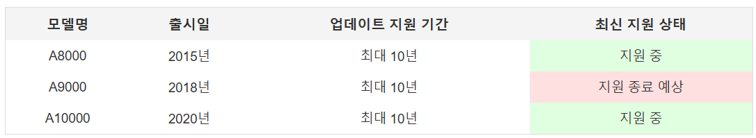 | λͺ¨λΈλͺ | μΆμμΌ | μ λ°μ΄νΈ μ§μ κΈ°κ° | μ΅μ μ§μ μν |