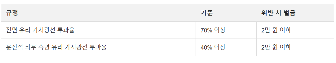 ์šด์ „์„ ์ขŒ์šฐ ์ธก๋ฉด ์œ ๋ฆฌ ๊ฐ€์‹œ๊ด‘์„  ํˆฌ๊ณผ์œจ 40% ์ด์ƒ 2๋งŒ ์› ์ดํ•˜