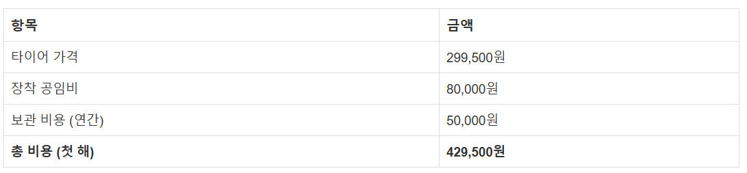 ํ์ด์ด๋ฅผ ๊ต์ฒดํ ํ, ์ฌ์ฉํ์ง ์๋ ํ์ด์ด๋ ๋ณด๊ดํด์ผ ํฉ๋๋ค. ํนํ ์ํฐ ํ์ด์ด๋ ๊ฒจ์ธ์ฒ ์๋ง ์ฌ์ฉ๋๊ธฐ ๋๋ฌธ์ ์ฌ๋ฆ์ฒ ์๋ ๋ณด๊ด์ ํด์ผ ํฉ๋๋ค. ํ์ด์ด ๋ณด๊ด ๋น์ฉ์ ์ ์ฒด์ ๋ฐ๋ผ ๋ค๋ฅด์ง๋ง, ์ผ๋ฐ์ ์ผ๋ก ํ ์ธํธ๋น ์ฐ๊ฐ 4๋ง ์์์ 10๋ง ์ ์ ๋์ ๋น์ฉ์ด ๋ฐ์ํฉ๋๋ค. ๋ณด๊ด ์๋น์ค๋ฅผ ์ ๊ณตํ๋ ์ ์ฒด์์๋ ํ์ด์ด ์ธํธ๋ฅผ ์์ ํ๊ฒ ๋ณด๊ดํด์ฃผ๋ฉฐ, ์ด๋ฅผ ํตํด ๋ณด๊ด ๊ณต๊ฐ์ ํ๋ณดํ์ง ์์๋ ๋ฉ๋๋ค.
