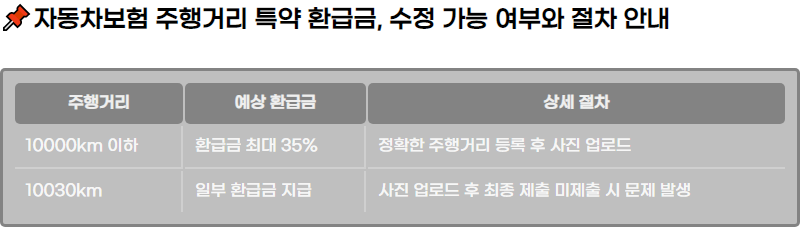 ์๋ฅผ ๋ค์ด, ์ฐ๊ฐ 10030km๋ฅผ ์ฃผํํ ๊ฒฝ์ฐ ํ๊ธ๊ธ์ด ์ง๊ธ๋ ์ฌ๋ก๊ฐ ์์ต๋๋ค. ๊ทธ๋ฌ๋ ์ถํด๊ทผ ๊ทผ๊ฑฐ๋ฆฌ๋ง ์ด๋ํ๊ฒ ๋ ๊ฒฝ์ฐ, ๋ฉฐ์น ๋ ์ด์ ํ์ฌ ์ฃผํ๊ฑฐ๋ฆฌ๋ฅผ 10000km ์ดํ๋ก ์กฐ์ ํ๊ณ ๋ค์ ์ ์ถํ ์ ์๋์ง์ ๋ํ ๋ ผ๋๋ ์์์ต๋๋ค. ๋ณดํ์ฌ ๊ณ ๊ฐ์ผํฐ์ ๋ฌธ์ํ ๊ฒฐ๊ณผ, ํ ๋ฒ ์ ์ถํ ์ ๋ณด๋ ์์ ์ด ๋ถ๊ฐ๋ฅํ๋ค๊ณ ์๋ด๋ฐ์์ผ๋, ๊ณ ๊ฐ์ผํฐ์์ ๋ค์ ๋ฑ๋กํ ์ ์๋๋ก ์ฒ๋ฆฌํด์ค ์ฌ๋ก๋ ์์ต๋๋ค.