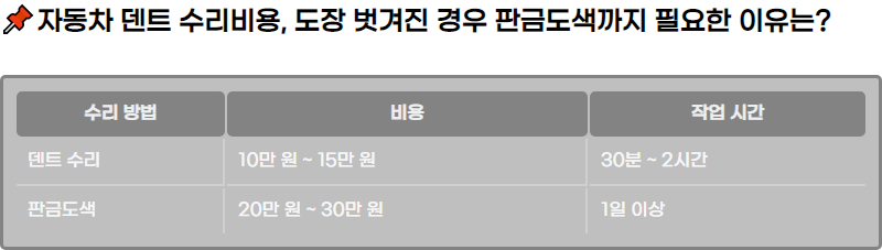 ๋ดํธ ์์ ๊ณผ ํ๊ธ๋์ ์์ ์ ์์์ ์ ๋์ ๋น์ฉ ๋ฉด์์ ํฐ ์ฐจ์ด๋ฅผ ๋ณด์ ๋๋ค. ๋จ์ํ ์ฐ๊ทธ๋ฌ์ง์ ๋ดํธ ์์ ์ผ๋ก ํด๊ฒฐํ ์ ์์ง๋ง, ๋์ฅ ์์์ด ์๋ ๊ฒฝ์ฐ์๋ ํ๊ธ๋์ ์์ ์ด ํ์์ ๋๋ค. ๋ฐ๋ผ์, ์ฐจ๋ ์๋ฆฌ ์ ์์์ ์ ๋์ ๋ง๋ ์๋ฆฌ ๋ฐฉ๋ฒ์ ์ ํํ๋ ๊ฒ์ด ์ค์ํฉ๋๋ค. ๋น์ฉ๊ณผ ์๊ฐ์ ๊ณ ๋ คํ์ฌ ํฉ๋ฆฌ์ ์ธ ๊ฒฐ์ ์ ๋ด๋ฆฌ์ธ์.