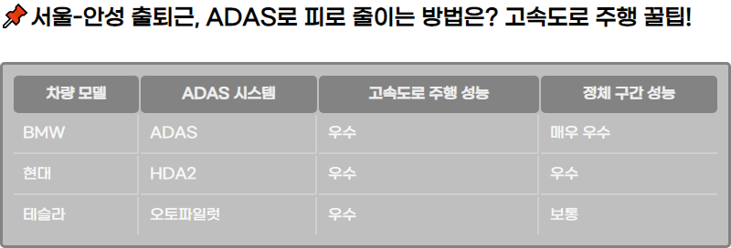 ์ฅ๊ฑฐ๋ฆฌ ์ถํด๊ทผ ํ๋ ์ด์ ์๋ถ๋ค์ด ๋ง์ต๋๋ค. ์๋ฅผ ๋ค์ด ์์ธ์์ ์ฉ์ธ๊น์ง ์์ฐจ๋ก ์ถํด๊ทผํ๋ ๋ฐฉ๋ฒ๊ณผ ADAS ์์คํ ์ ํจ๊ณผ์ ์ธ ํ์ฉ๋ฒ์ ์๊ฐํฉ๋๋ค. ๊ณ ์๋๋ก ์ฃผํ ์ ํผ๋ก๋ฅผ ์ค์ด๊ณ , ํจ์จ์ ์ธ ์ด์ ๋ณด์กฐ ๊ธฐ๋ฅ์ ์ ๊ณตํ๋ ADAS, HDA2, BMW์ ์ฐจ๋ณํ๋ ๊ธฐ๋ฅ์ ๋น๊ตํด ๋ณด์ธ์. ์ถํด๊ทผ ์๊ฐ์ด ๊ธด ๋ถ๋ค์๊ฒ ๊ผญ ํ์ํ ๊ฟํ์ ์๋ ค๋๋ฆฝ๋๋ค.