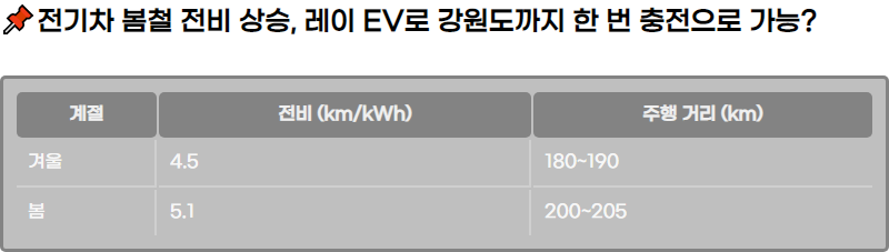 ์๋ฅผ ๋ค์ด, ๊ฒจ์ธ์ฒ ์๋ 1ํ ์ถฉ์ ์ผ๋ก ์ฝ 180~190km๋ฅผ ์ฃผํํ ์ ์์ง๋ง, ๋ด์ฒ ์๋ 200km๋ฅผ ๋์ ์๋ ์์ต๋๋ค.