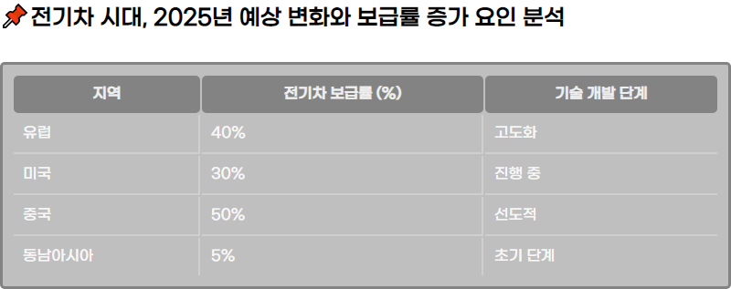 | 지역 | 전기차 보급률 (%) | 기술 개발 단계 |