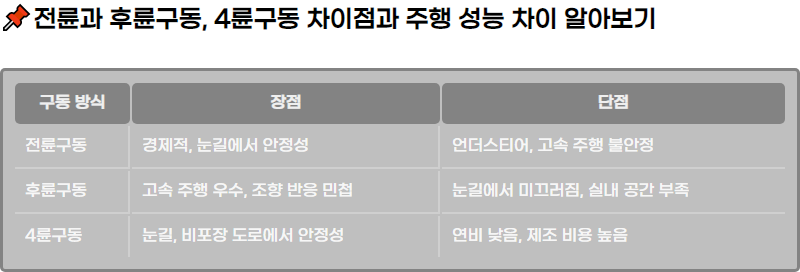 ์ „๋ฅœ๊ณผ ํ›„๋ฅœ๊ตฌ๋™, 4๋ฅœ๊ตฌ๋™ ์ฐจ์ด์ ๊ณผ ์ฃผํ–‰ ์„ฑ๋Šฅ ์ฐจ์ด ์•Œ์•„๋ณด๊ธฐ