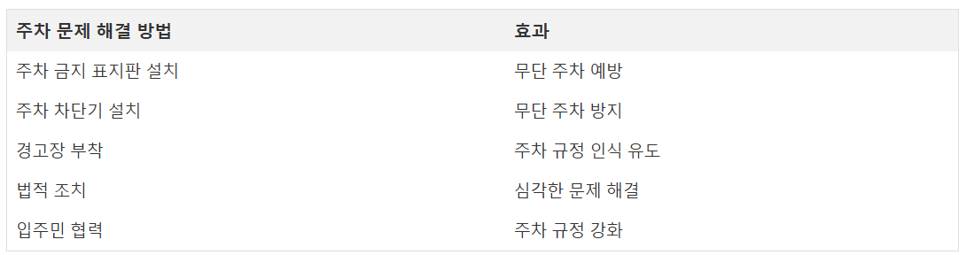 | ์ฃผ์ฐจ ๋ฌธ์ ํด๊ฒฐ ๋ฐฉ๋ฒ | ํจ๊ณผ |