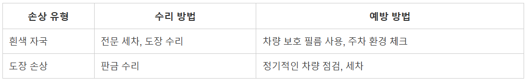 ๋ํ, ์ฃผ๊ธฐ์ ์ธ ์ธ์ฐจ๋ ์ค์ํฉ๋๋ค. ์ธ์ฐจ๋ฅผ ํ ๋, ์ฐจ๋ ํ๋ฉด์ ๋ฌป์ ์ํ๋ฌผ ๋ฐฉ์ธ์ ๋น ๋ฅด๊ฒ ๋ฆ์๋ด๋ฉด ์๊ตญ์ ๋ฏธ๋ฆฌ ์๋ฐฉํ ์ ์์ต๋๋ค. ํนํ ์ํ๋ฌผ์ ์๊ฐ์ด ์ง๋๋ฉด ์ ๊ฑฐํ๊ธฐ ์ด๋ ค์์ง๋ฏ๋ก, ์๊ตญ์ ๋ฐ๊ฒฌํ์ ๋ ๋น ๋ฅด๊ฒ ์กฐ์น๋ฅผ ์ทจํ๋ ๊ฒ์ด ์ค์ํฉ๋๋ค.