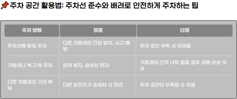 | ์ฃผ์ฐจ ๋ฐฉ๋ฒ | ์ฅ์ | ๋จ์ |