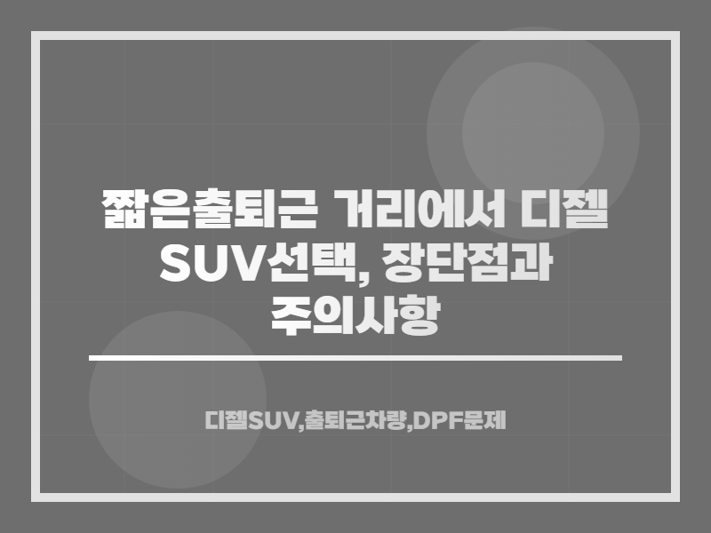 ๊ทธ๋ฌ๋ ์งง์ ์ถํด๊ทผ ๊ฑฐ๋ฆฌ๋ฅผ ๊ณ ๋ คํ ๋, ๋์ ค SUV๋ ๋ช ๊ฐ์ง ๋จ์ ์ด ์์ ์ ์์ต๋๋ค. ๋์ ค ์ฐจ๋์ ์ฅ๊ฑฐ๋ฆฌ ์ดํ์ ์ต์ ํ๋์ด ์์ต๋๋ค. ์ถํด๊ทผ์ด ์งง์ ๊ฑฐ๋ฆฌ๋ฅผ ๋ฐ๋ณตํ ๊ฒฝ์ฐ, ๋์ ค ์์ง์ ํจ์จ์ด ๋ฎ์์ง๊ณ , ๋์ ค ๋ฏธ๋ฆฝ์ ํํฐ(DPF) ๋ฌธ์ ์ ์ง๋ฉดํ ์ ์์ต๋๋ค.