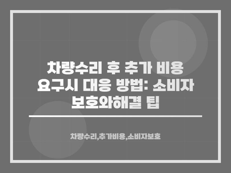 ์๋์ฐจ ์๋ฆฌ ํ ์ถ๊ฐ ๋น์ฉ์ด ๋ฐ์ํ์ ๋, ๋ฒ์ ๋์๊ณผ ์๋น์ ๋ณดํธ ๊ธฐ๊ด ์ ๊ณ ๋ฐฉ๋ฒ์ ํ์ธํ์ธ์. ์ ์ ํ ๋์์ผ๋ก ๋ฌธ์ ๋ฅผ ํด๊ฒฐํ๋ ๋ฐฉ๋ฒ์ ์๋ ค๋๋ฆฝ๋๋ค.