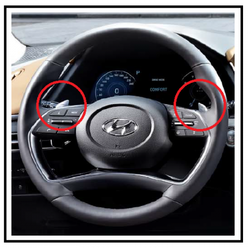์ฐจ๋์ ํธ๋ค ๋ค์ ์๋ ์ค๋ฒ์์ '+'์ '-' ๋ฒํผ์ ํจ๋ค ์ํํธ(Paddle Shift)๋ผ๋ ๊ธฐ๋ฅ์ ์ ์ดํ๋ ์ฅ์น์ ๋๋ค. ์ด ๋ฒํผ๋ค์ ์๋ ๊ธฐ์ด ์กฐ์์ ๊ฐ๋ฅํ๊ฒ ํ์ฌ, ์๋ ๋ณ์๊ธฐ ์ฐจ๋์์๋ ์ด์ ์๊ฐ ์ํ๋ ๊ธฐ์ด๋ฅผ ์๋์ผ๋ก ๋ณ๊ฒฝํ ์ ์๊ฒ ํด์ค๋๋ค. ์ด๋ ์ฐจ๋์ ์ฑ๋ฅ์ ๋์ฑ ์ธ๋ฐํ๊ฒ ์ ์ดํ ์ ์๋ ์ ์ฉํ ๊ธฐ๋ฅ์ผ๋ก, ํนํ ์คํฌ์ธ ์ฃผํ์ด๋ ํน์ ํ ๋๋ก ์ํฉ์์ ํฐ ๋์์ด ๋ฉ๋๋ค.