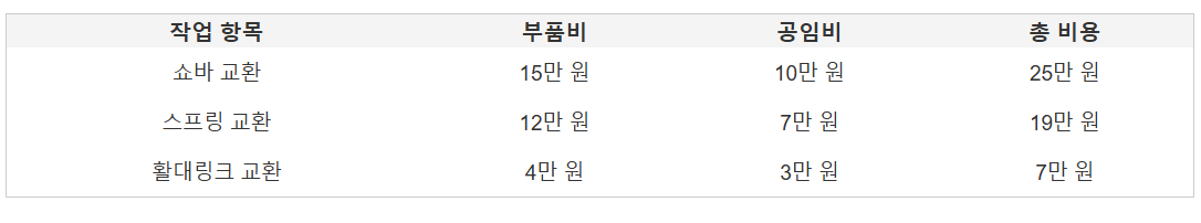 | μμ νλͺ© | λΆνλΉ | 곡μλΉ | μ΄ λΉμ© |
