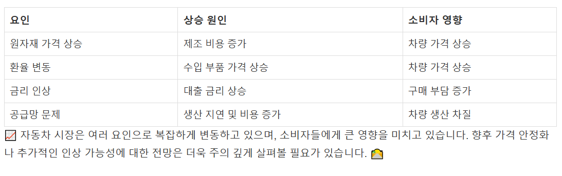 | μμμ¬ κ°κ²© μμΉ | μ μ‘° λΉμ© μ¦κ° | μ°¨λ κ°κ²© μμΉ |