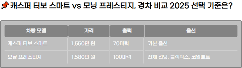 2025๋ ๋ชจ๋ธ์ ๊ณ ๋ฏผํ๋ ๊ฒฝ์ฐจ ๊ตฌ๋งค์๋ผ๋ฉด, ์บ์คํผ ํฐ๋ณด ์ค๋งํธ์ ๋ชจ๋ ํ๋ ์คํฐ์ง ๋ชจ๋ธ ๊ฐ์ ์ ํ์ด ์ค์ํ ๊ฒ์ ๋๋ค. ๋ ์ฐจ๋์ ๊ฐ๊ฒฉ ์ฐจ์ด๋ ์ฝ๊ฐ ์กด์ฌํ์ง๋ง, ์ ๊ณต๋๋ ์ต์ ๊ณผ ์ฑ๋ฅ์ ๊ณ ๋ คํ๋ฉด ์ด๋ค ๋ชจ๋ธ์ด ๋ ๋งค๋ ฅ์ ์ผ์ง ๊ฒฐ์ ํ๋ ๋ฐ ๋์์ด ๋ ์ ์์ต๋๋ค.