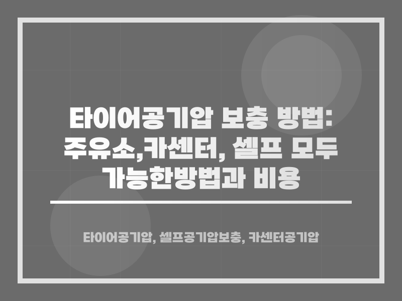 ํ์ด์ด ๊ณต๊ธฐ์์ ๋ณด์ถฉํ๋ ๋ฐฉ๋ฒ์ ์ฌ๋ฌ ๊ฐ์ง๊ฐ ์์ต๋๋ค. ์ฃผ์ ์, ์ ํ ์ธ์ฐจ์ฅ, ์นด์ผํฐ ๋ฑ ๋ค์ํ ๊ณณ์์ ๊ณต๊ธฐ์์ ๋ณด์ถฉํ ์ ์์ผ๋ฉฐ, ๊ฐ ๋ฐฉ๋ฒ์ ๋ฐ๋ผ ๋น์ฉ๊ณผ ์ ์ฐจ๊ฐ ๋ฌ๋ผ์ง ์ ์์ต๋๋ค.