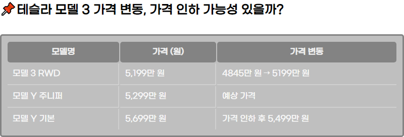 | ๋ชจ๋ธ 3 RWD | 5,199๋ง ์ | 4845๋ง ์ → 5199๋ง ์ |