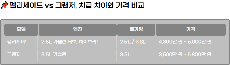 ํ๋ ํฐ๋ฆฌ์ธ์ด๋์ ๊ทธ๋์ ์ ์ฐจ๊ธ ๋น๊ต ๋ฐ ๊ฐ๊ฒฉ ์ฐจ์ด๋ฅผ ์์๋ณด์ธ์. ๋ ์ฐจ๋์ ์ฑ๋ฅ, ๊ฐ๊ฒฉ, ๋์์ธ ์ฐจ์ด๋ฅผ ์์ธํ ๋ถ์ํฉ๋๋ค.