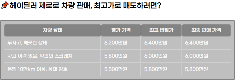 | μ°¨λ μν | νκ° κ°κ²© | μ΅κ³ μ μ°°κ° | μ΅μ’ νλ§€ κ°κ²© |