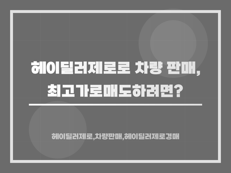 ν€μ΄λλ¬ μ λ‘λ₯Ό ν΅ν΄ μ°¨λμ μ΅κ³ κ°λ‘ νλ§€νλ λ°©λ²μ μμ보μΈμ. νμ‘ ν λκΈ μ κΈμ μ΄λ»κ² μ§νλλμ§, λͺ μ μ΄μ λ¬Έμ μμ΄ λΉ λ₯΄κ² μ°¨λμ νλ§€ν μ μλ μ μ°¨λ₯Ό μ€λͺ ν©λλ€. ν€μ΄λλ¬ μ λ‘μ μ₯μ κ³Ό κ²½λ§€ κ³Όμ , κ°κ²© λ³λ λ±μ νμΈν΄λ³΄μΈμ.