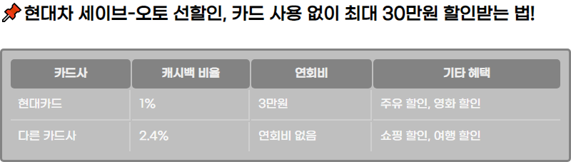 ํ๋์ฐจ ์ธ์ด๋ธ-์คํ ์ ํ ์ธ ํ๋ก๊ทธ๋จ์ ํตํด ์ฐจ๋ ๊ตฌ๋งค ์ ์ต๋ 30๋ง์ ํ ์ธ์ ๋ฐ์ ์ ์๋ ๋ฐฉ๋ฒ์ ์๋ ค๋๋ฆฝ๋๋ค. ์นด๋ ์ฌ์ฉ ์์ด๋ ํ ์ธ์ด ๊ฐ๋ฅํ๋ฉฐ, ์ฐํ๋น์ ์บ์๋ฐฑ ๋ฑ์ ํํ์ ์ข ํฉ์ ์ผ๋ก ๋ถ์ํ์ฌ ์ค์ ํํ์ ์ต์ ํํ๋ ๋ฐฉ๋ฒ์ ์๊ฐํฉ๋๋ค. ์นด๋ ์ด์ฉ ์กฐ๊ฑด๊ณผ ํ ์ธ ํํ์ ์ดํดํ๊ณ , ๊ฐ์ฅ ์ ๋ฆฌํ ์ ํ์ ํ ์ ์๋ ๊ฐ์ด๋๋ฅผ ์ ๊ณตํฉ๋๋ค.