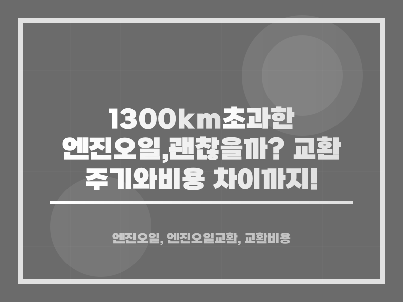 ์์ง์ค์ผ ๊ตํ ์ฃผ๊ธฐ๋ฅผ 1300km ์ด๊ณผํ์ฌ ์ดํํ ๊ฒฝ์ฐ, ์์ง์ ๋ฏธ์น๋ ์ํฅ๊ณผ ๋น์ฉ ์ฐจ์ด์ ๋ํด ์์๋ณด์ธ์. ์ ๋ฌธ๊ฐ๋ค์ด ๋งํ๋ ์์ง์ค์ผ ๊ตํ์ ์ค์์ฑ, ๊ณต์๋๋ผ์ ์ผ๋ฐ ์นด์ผํฐ์์์ ๊ฐ๊ฒฉ ์ฐจ์ด๋ฅผ ๋น๊ตํ๊ณ , ๊ณผ์ฐ ์์ง์ค์ผ์ ๋ฆ๊ฒ ๊ตํํด๋ ๊ด์ฐฎ์์ง ํ์ธํด ๋ณด์ธ์.