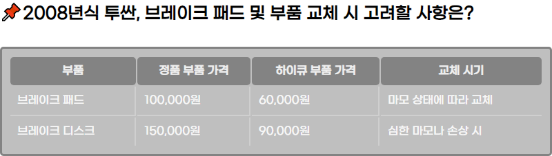 | ๋ธ๋ ์ดํฌ ํจ๋ | 100,000์ | 60,000์ | ๋ง๋ชจ ์ํ์ ๋ฐ๋ผ ๊ต์ฒด |