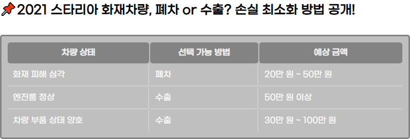 νμ¬λ‘ μΈν΄ μ°¨λ λ΄λΆκ° μμλμμ§λ§, μμ§λ£Έμλ νΌν΄κ° μλ€λ μ μ μμΆμ κ°λ₯μ±μ λμ¬μ€λλ€. μμ§, λ³μκΈ° λ± ν΅μ¬ λΆνλ€μ΄ μ¨μ ν μνλΌλ©΄, λΆνμ μμΆνμ¬ μΌλΆ μμ΅μ μ»μ μ μμ κ°λ₯μ±μ΄ μμ΅λλ€.