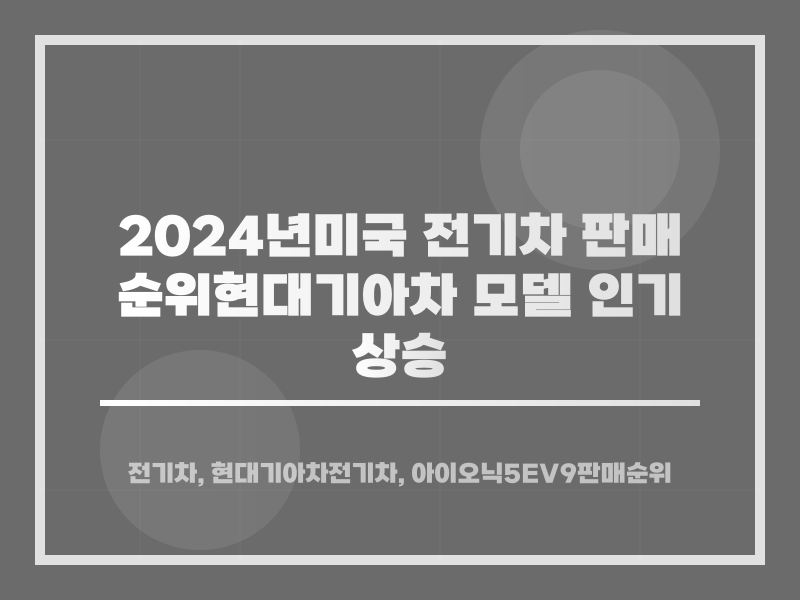 2024๋ ๋ฏธ๊ตญ ์ ๊ธฐ์ฐจ ์์ฅ์์ ํ๋๊ธฐ์์ฐจ ๋ชจ๋ธ๋ค์ด ๊ฐ๋ ฅํ ํ๋งค ์ค์ ์ ๊ธฐ๋กํ์ต๋๋ค. ํ๋ ์์ด์ค๋5, ๊ธฐ์ EV9, ๊ธฐ์ EV6 ๋ฑ ์ธ๊ธฐ ๋ชจ๋ธ๋ค์ด ๋์ ์์๋ฅผ ์ฐจ์งํ๋ฉฐ, ๋ฏธ๊ตญ ๋ด ์ ๊ธฐ์ฐจ ํ๋งค ๋ํฅ์ ์ดํด๋ด ๋๋ค. ์์ด์ค๋5์ EV9์ ๊ฐ๊ธฐ 4์, 13์์ ์ฌ๋ผ ๊ฒฝ์๋ ฅ์ ๋ณด์ฌ์ค๋๋ค. ์ด ๊ธ์์๋ ์ต์ ์ ๊ธฐ์ฐจ ํ๋งค ์์์ ๊ด๋ จ๋ ์ ๋ณด๋ฅผ ์ ๊ณตํฉ๋๋ค.