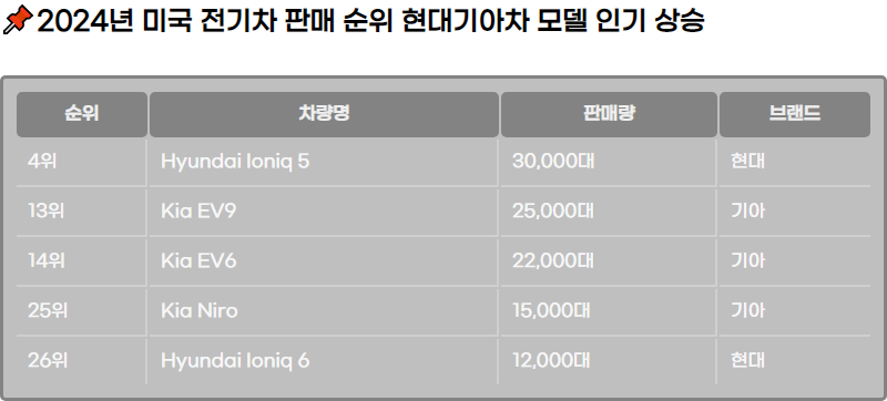 2024๋ ๋ฏธ๊ตญ ์ ๊ธฐ์ฐจ ํ๋งค ์์ ๊ฐ์