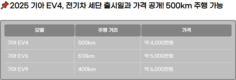 2025 ๊ธฐ์ EV4 ์ถ์์ผ ๋ฐ ๊ฐ๊ฒฉ ์ ๋ณด