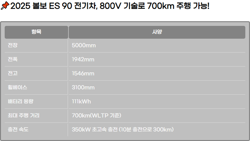 ๋ณผ๋ณด ES 90์ ๋ธ๋๋ ์ต์ด๋ก 800V ์ํคํ ์ฒ๋ฅผ ์ ์ฉํ์ฌ, ์ ๊ธฐ์ฐจ์ ์ฃผํ ์ฑ๋ฅ์ ๋ํญ ํฅ์์ํจ ๋ชจ๋ธ์ ๋๋ค. ์ด ์ํคํ ์ฒ๋ ์ฃผํ ๊ฑฐ๋ฆฌ, ์ถฉ์ ์๋, ๊ทธ๋ฆฌ๊ณ ํจ์จ์ฑ์ ๋์์ ๊ฐ์ ํ ์ ์๋๋ก ์ค๊ณ๋์์ต๋๋ค. ๋ํ, 350kW ์ด๊ณ ์ ์ถฉ์ ์ ์ง์ํ์ฌ 10๋ถ ๋ง์ 300km์ ์ฃผํ ๊ฑฐ๋ฆฌ๋ฅผ ํ๋ณดํ ์ ์์ต๋๋ค.